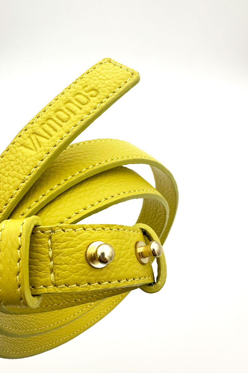 Lucrata manual in Romania, din piele naturala autentica de bovina, de inalta calitate si atent selectionata, aceasta curea are o structura relativ moale si un design modern si dezinvolt, recomandata atat pentru pantaloni, cat si pentru rochite.