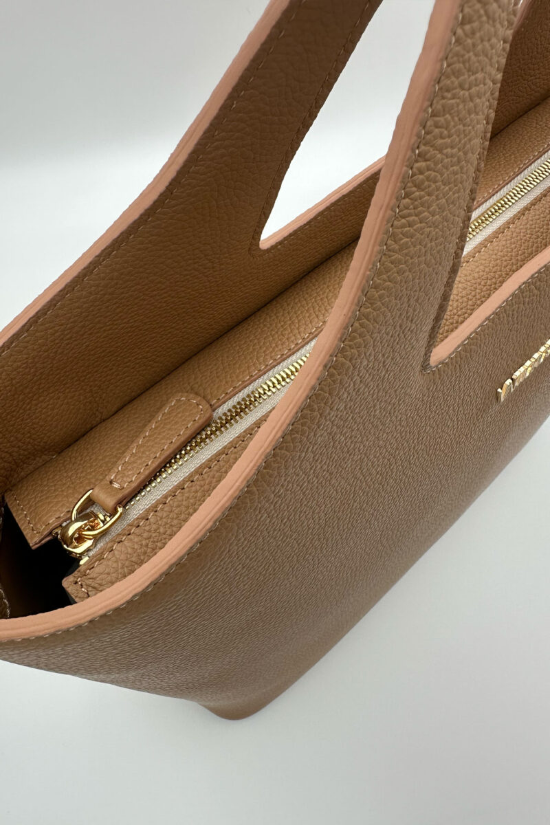 Comanda acum aceasta minunata geanta in nuanta camel, din piele naturala, si asorteaza-ti tinutele intr-un mod autentic!
