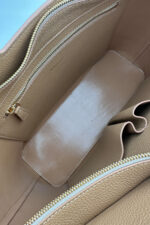 Lucrata manual in Romania, din piele naturala autentica de bovina, de inalta calitate si atent selectionata, aceasta geanta are o structura darza si un design modern chic, interiorul acesteia fiind suficient de incapator, avand 2 buzunarele bufante si un altul cu fermoar, diametral opus, pentru o mai buna organizare a lucrurilor personale. Ba mai mult, incape chiar si un laptop de 14 inch.